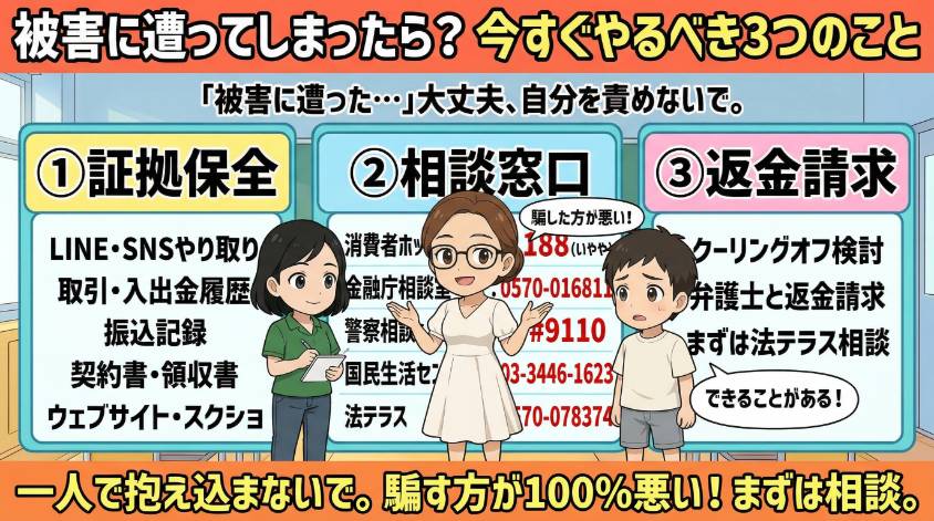 ※この記事は投資助言ではありません。投資判断はご自身の責任で行ってください。詐欺被害に遭った場合は、消費者ホットライン(188)や警察(#9110)にご相談ください。