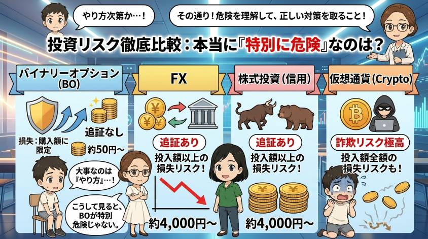 - バイナリーオプションと他の投資商品の危険性を比較
