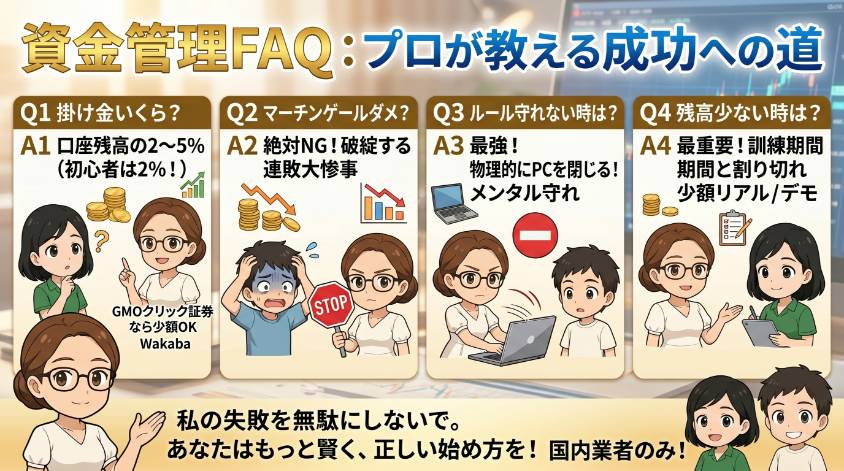 バイナリーオプションの資金管理について多くの方が疑問に感じるポイントをQ&A形式でまとめました。