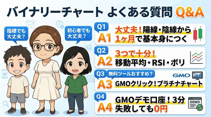 バイナリーオプションのチャートについて多くの方が疑問に感じるポイントをQ&A形式でまとめました。