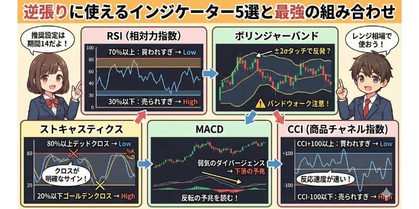 この記事では、インジケーターの使い方や具体的な手法はもちろん、「どんな場面で逆張りすべきか」「どんな場面では絶対にやってはいけないか」という判断基準まで徹底的に解説します。
