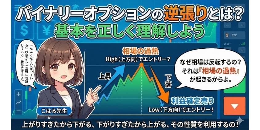 具体的には、価格が上昇しているときに「そろそろ下がる」と予測してLow(下方向)でエントリーし、逆に価格が下降しているときに「そろそろ上がる」と予測してHigh(上方向)でエントリーします。