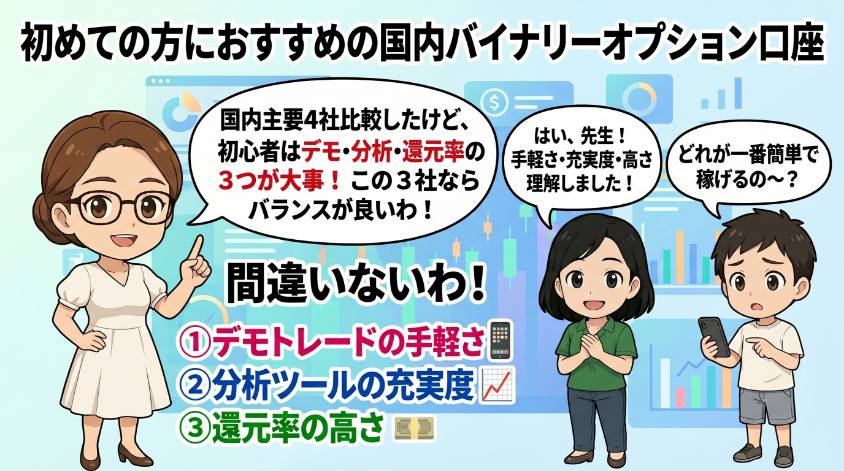 「バイナリーオプション、始めてみたいけど…国内の業者ってどれがいいの?」