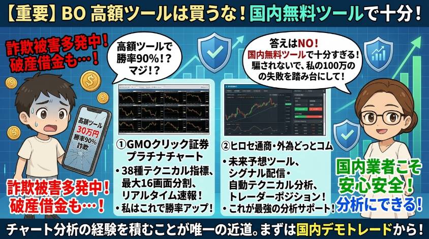 • 高額ツールは不要。国内業者の無料ツール(プラチナチャート・未来予想ツール)で十分
