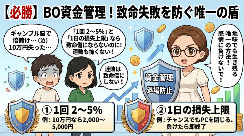 国内業者を選んだとしても、資金管理のルールがなければ大切なお金を失うわ。逆に言えば、資金管理さえしっかりしていれば、致命的な失敗は避けられる。ここが一番大事なところよ。