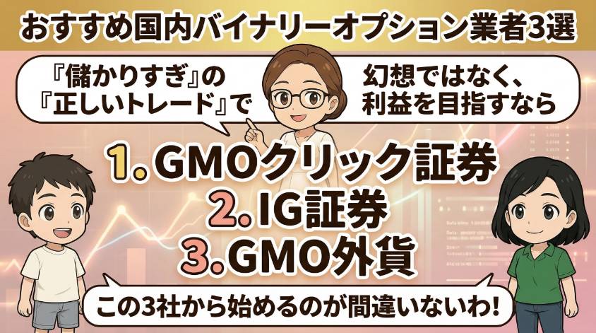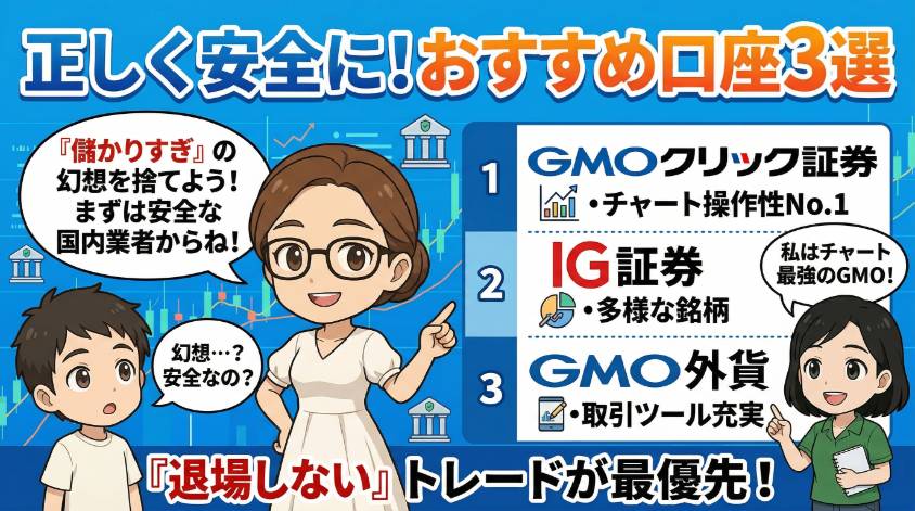 「儲かりすぎ」の幻想ではなく、「正しいトレード」で利益を目指すなら、この3社から始めるのが間違いないわ。
