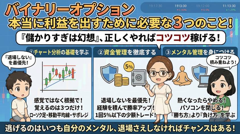 - 正しくやれば利益は出せる。必要なのはチャート分析・資金管理・メンタル管理の3つ